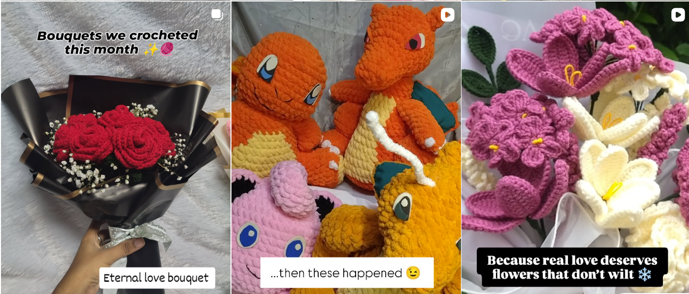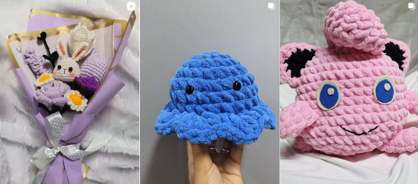 Cute handmade crochet toys crafted with soft yarn and detailed stitching. Perfect as decorative pieces, collectibles, or thoughtful handmade gifts for kids and crochet lovers.