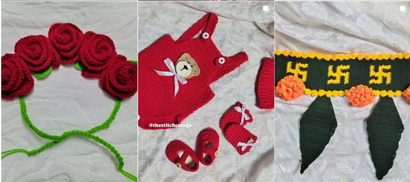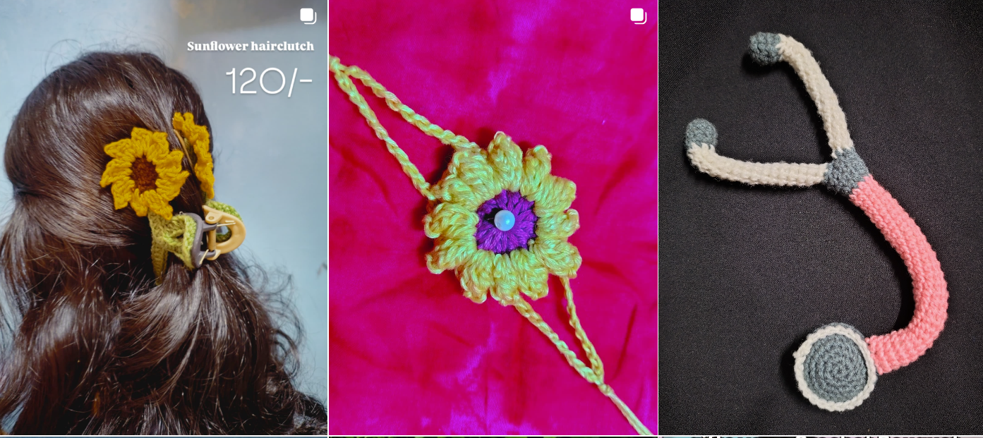 Handmade crochet flower rakhis crafted with colorful threads and delicate detailing. Perfect for celebrating Raksha Bandhan with a unique, handmade touch that stands out from regular rakhis.
